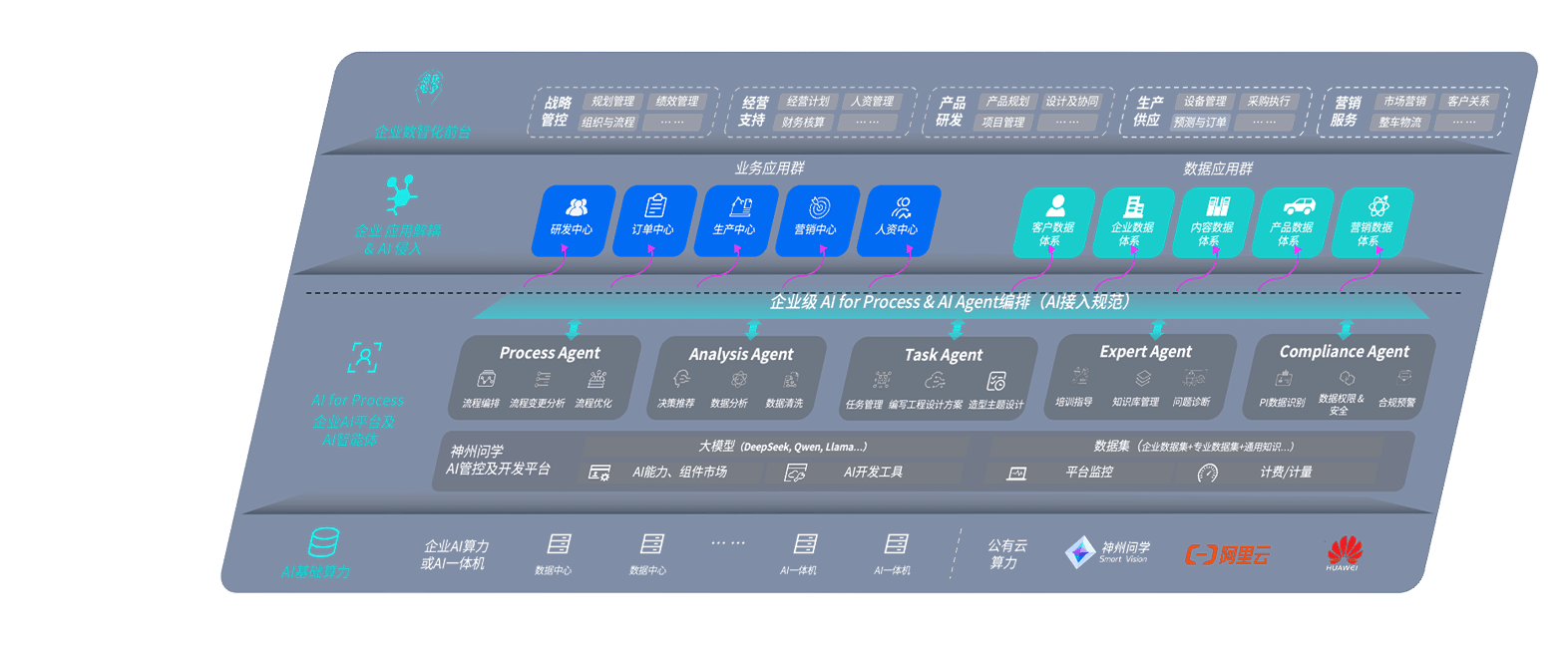 彩神问学智车解决方案是一套基于AI技术的汽车行业智能化系统,,覆盖从底层算力到顶层AI应用的全栈方案。。方案由算力层、、、、模型层和应用层组成:算力层,,方案支持多种一体机配置,,,,具备云端灵活部署、、、、多云适配以及动态优化计算资源的能力;模型层,,,,彩神问学平台版提供了企业级AI应用一站式构建与管理平台,,支持基于后训练强化技术的汽车企业专属模型的训练、、、、评测和运营;应用层,,彩神问学DeepSeek版提供包括超级员工、、、、智能招采、、、智能营销、、智能客服、、、AI for BI等一系列解决方案,,,,可助力汽车行业实现数字化转型,,,让管理更智能、、、、响应更敏捷。。。。
